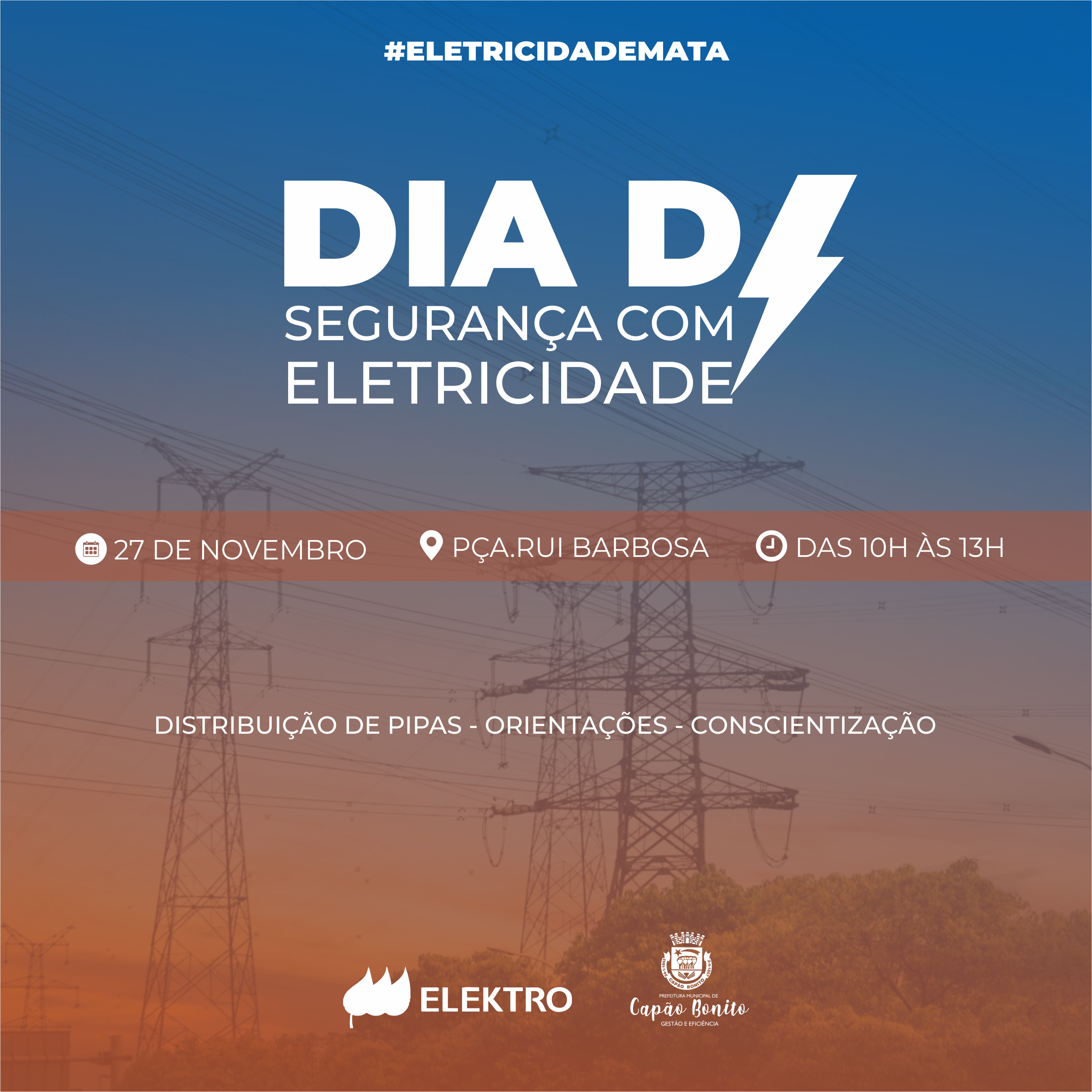 Capão Bonito receberá o projeto “Dia D de Segurança com Eletricidade”, na próxima quarta-feira, dia 27, das 10h às 13h, na Praça Rui Barbosa.