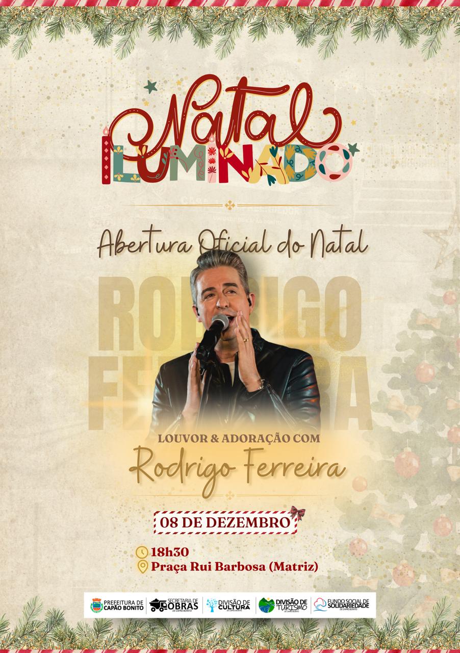 LOUVOR & ADORAÇÃO NO NATAL | Capão Bonito já está vivendo o clima especial do Natal e, para marcar a abertura oficial da Programação Especial, o município receberá uma apresentação inspiradora de louvor e adoração com o renomado cantor Rodrigo Ferreira.