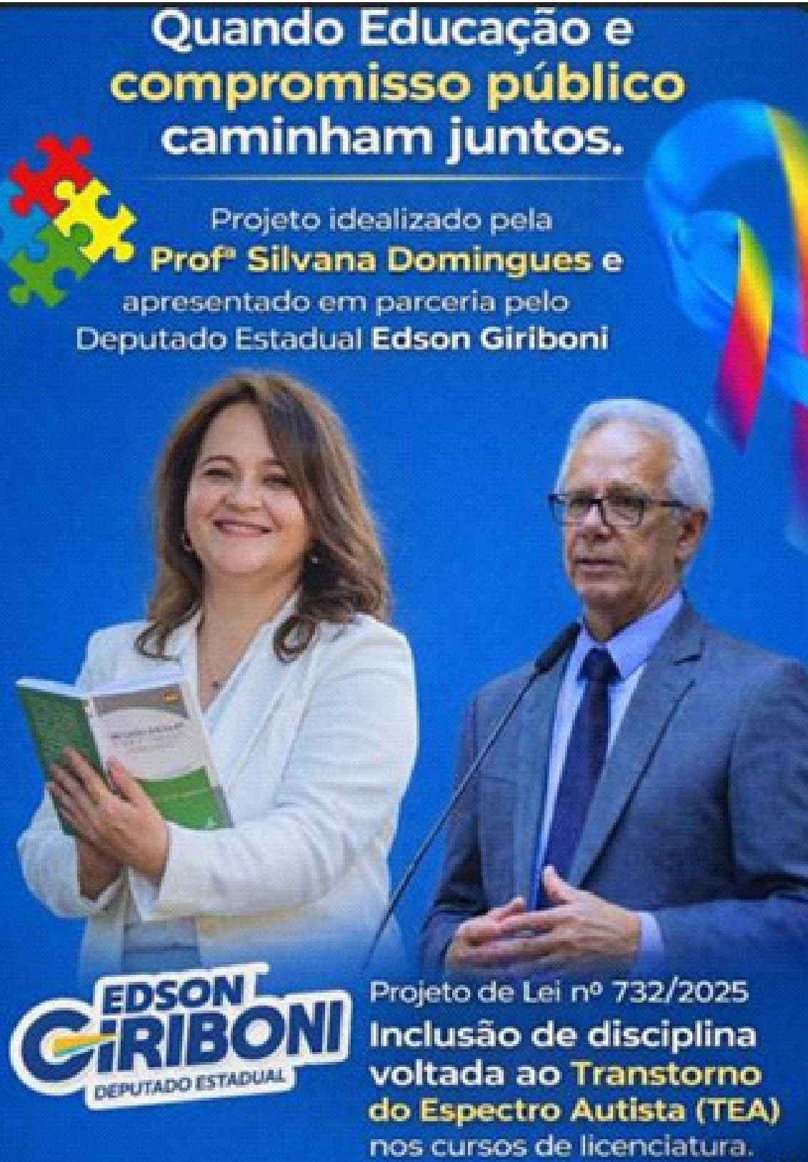 De autoria do deputado estadual Edson Giriboni, a iniciativa prevê a inclusão obrigatória de uma disciplina específica sobre o Transtorno do Espectro Autista (TEA) em todos os cursos de licenciatura oferecidos por universidades públicas e privadas do estado.