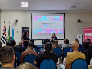 “Também estamos aqui para falar sobre precificação, construção de portfólio, estratégias de comunicação, comercialização física e digital, planejamento financeiro e acesso a editais, promovendo autonomia e geração de renda na cultura”, destacaram Antonieta e Eliane durante a apresentação.