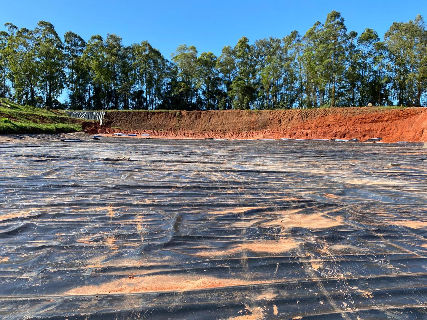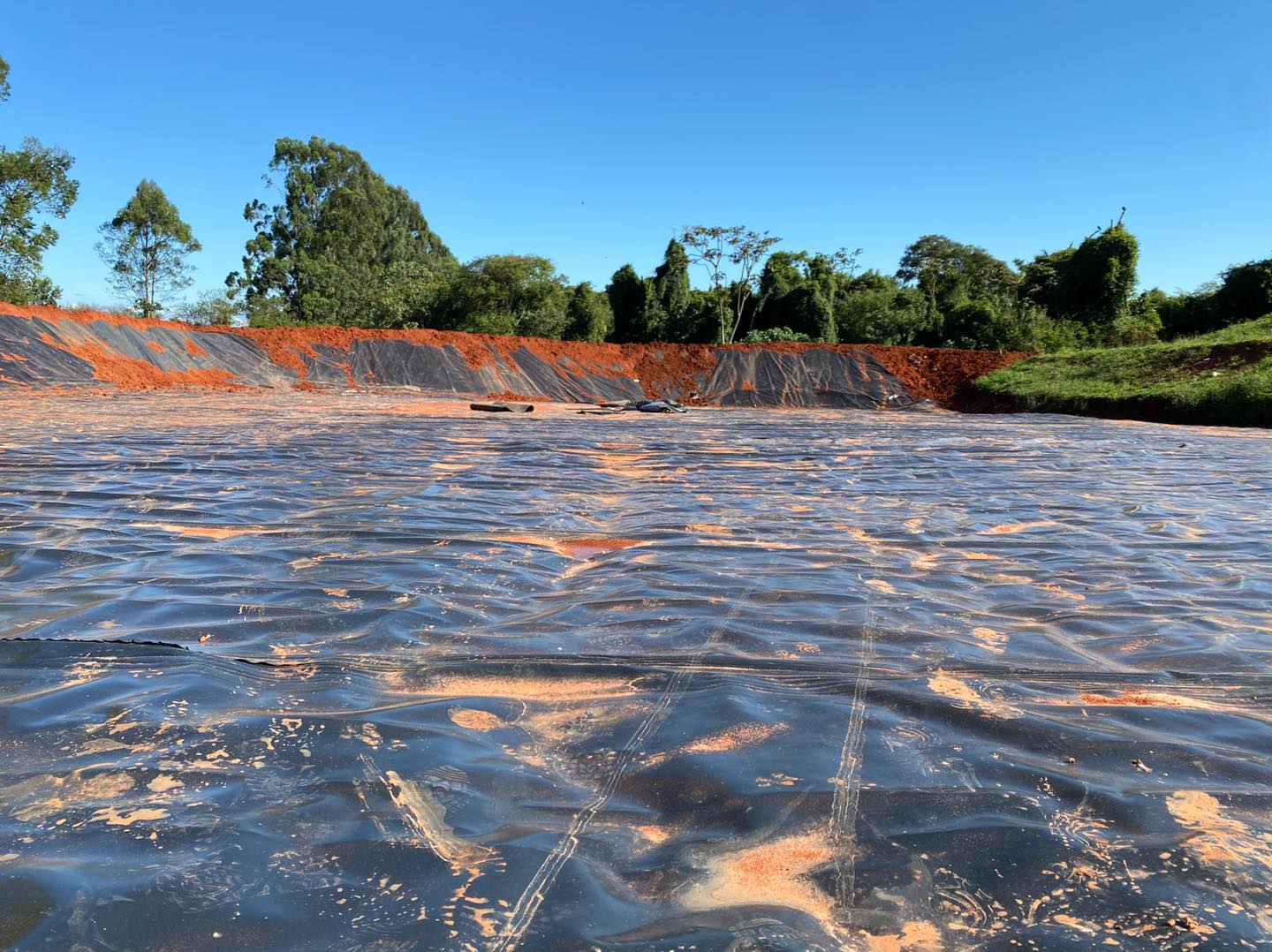 Para evitar as contaminações, é recomendada a Aplicação de Geomembrana e é justamente isto que a Prefeitura providenciou.