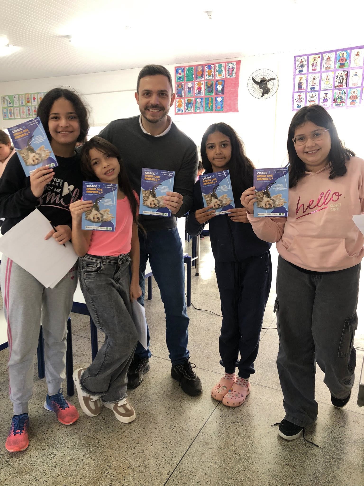 Nesta semana, a Escola Municipal Akiko Ikeda recebeu mais uma etapa do Programa “Cidade Amiga dos Animais”, iniciativa que integra educação, conscientização e amor pelos pets.