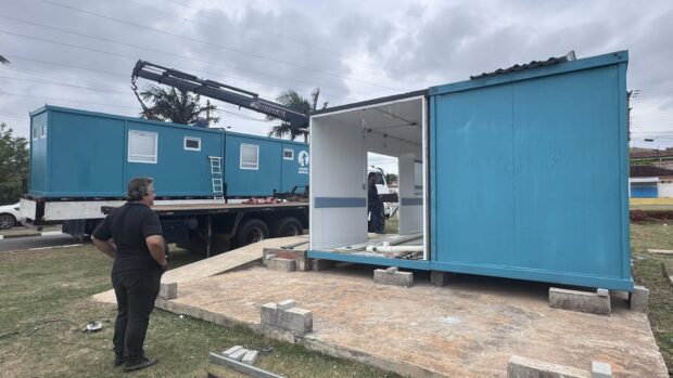 O vereador Antonio Roberto de Siqueira, acompanhado dos secretários Felipe Marques (Obras) e Marcelo Batista (Planejamento), esteve presente durante a montagem nesta quinta-feira (02/10). Para ele, a clínica é um marco: