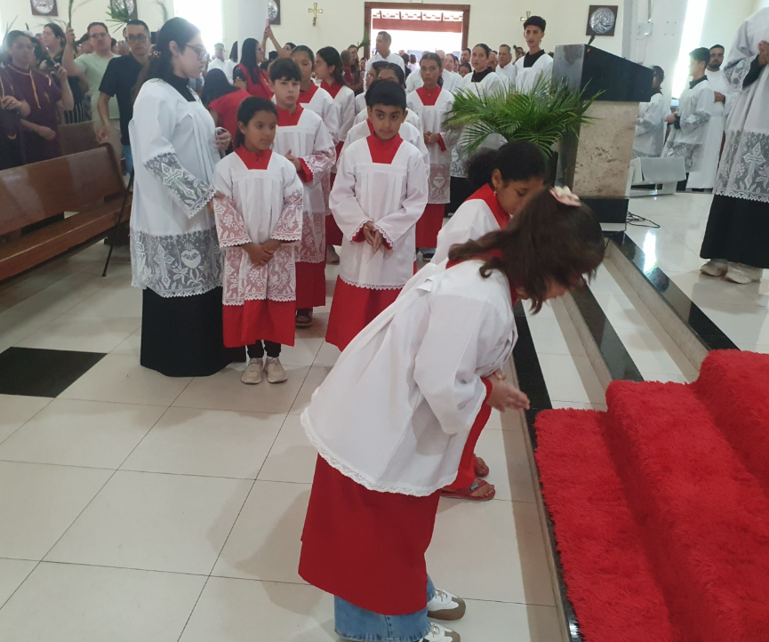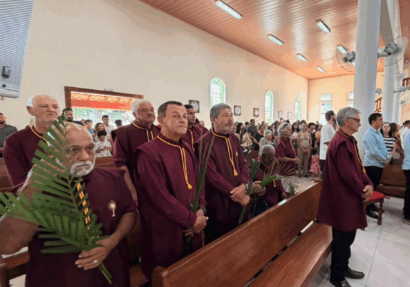 Durante a missa, marcada pela tradição do Domingo de Ramos, que relembra a entrada triunfal de Jesus em Jerusalém, os presentes tiveram a oportunidade de refletir sobre valores como fé, esperança e renovação.