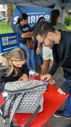 Durante a feira, os visitantes puderam conhecer os animais disponíveis, receber orientações dos protetores e entender melhor o compromisso que envolve a adoção.