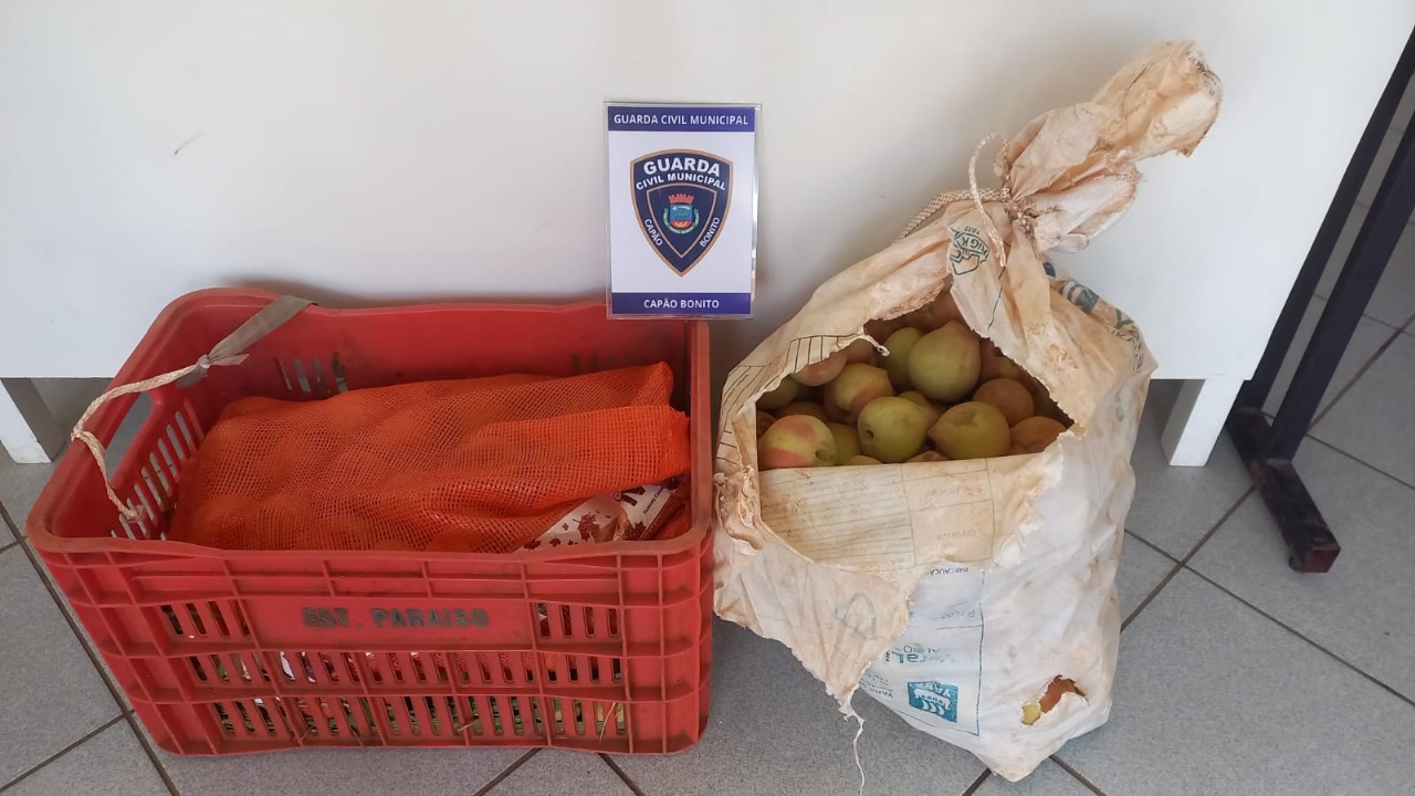 Suspeitos foram flagrados transportando caixa com frutas furtadas de propriedade rural; prisão foi ratificada pela Polícia Civil