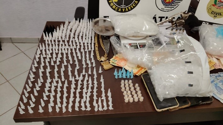 Entre os itens apreendidos estavam porções de crack em processo de fracionamento, 400 microtubos contendo substância análoga à cocaína e aproximadamente 4 mil microtubos vazios utilizados para o acondicionamento de entorpecentes.