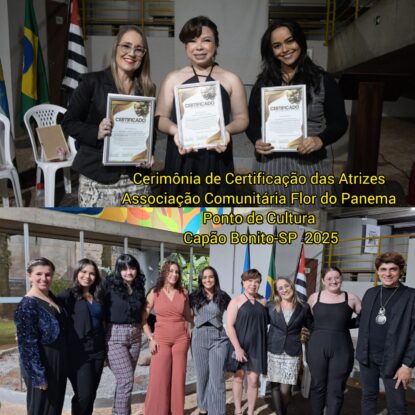 Além das apresentações, a Mostra também celebrou um momento especial: a Cerimônia de Certificação das atrizes Thaiz Lima, Franciele Oliveira e Jane Cristina, que concluíram três anos de estudos e formação teatral. O Curso de Teatro da Associação oferece aulas práticas, teóricas e apresentações públicas gratuitas, com duração de três anos e certificação ao final — embora a formação não conceda DRT profissional.
