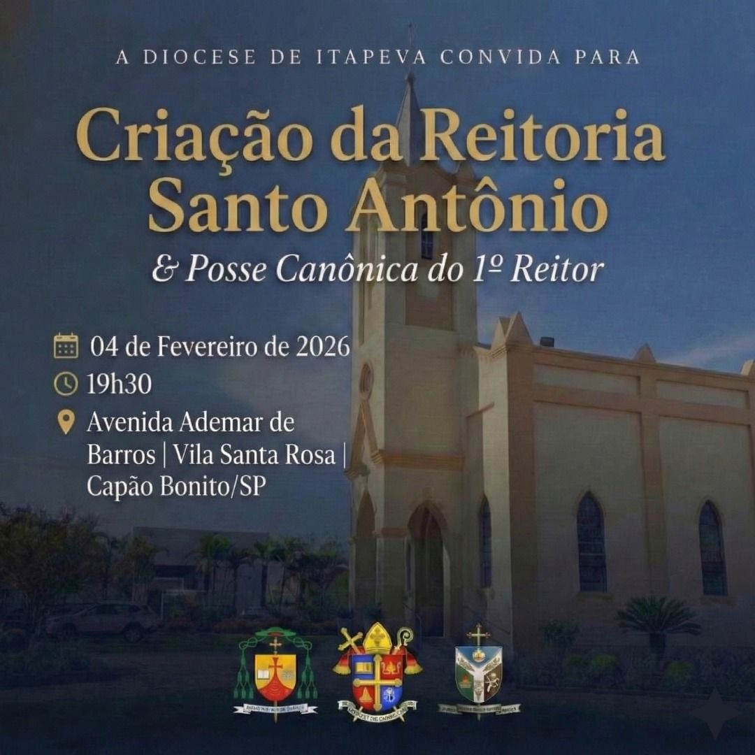 AÇÕES EVANGELIZADORAS | Capão Bonito viverá um momento histórico no campo religioso e comunitário com a inauguração da Reitoria Santo Antônio, que acontecerá no dia 04 de fevereiro de 2026, às 19h30, na Avenida Ademar de Barros, no bairro Vila Santa Rosa.