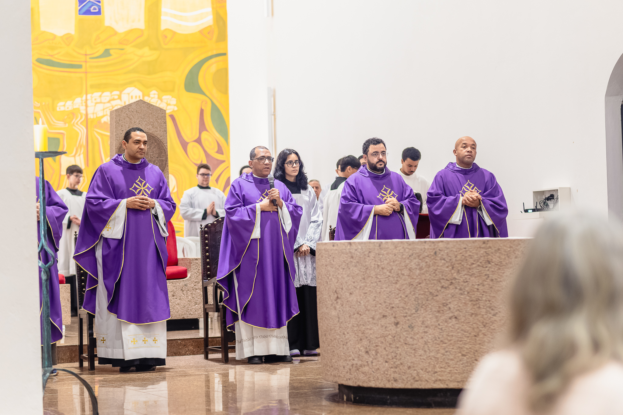 A Santa Missa foi presidida pelo Vigário Geral, Pe. Márcio Dias, e concelebrada pelo Pe. Sueder Domingues, pároco da Catedral, pelo Pe. Diego Willian, Frei Evandro e Pe. Adilson.