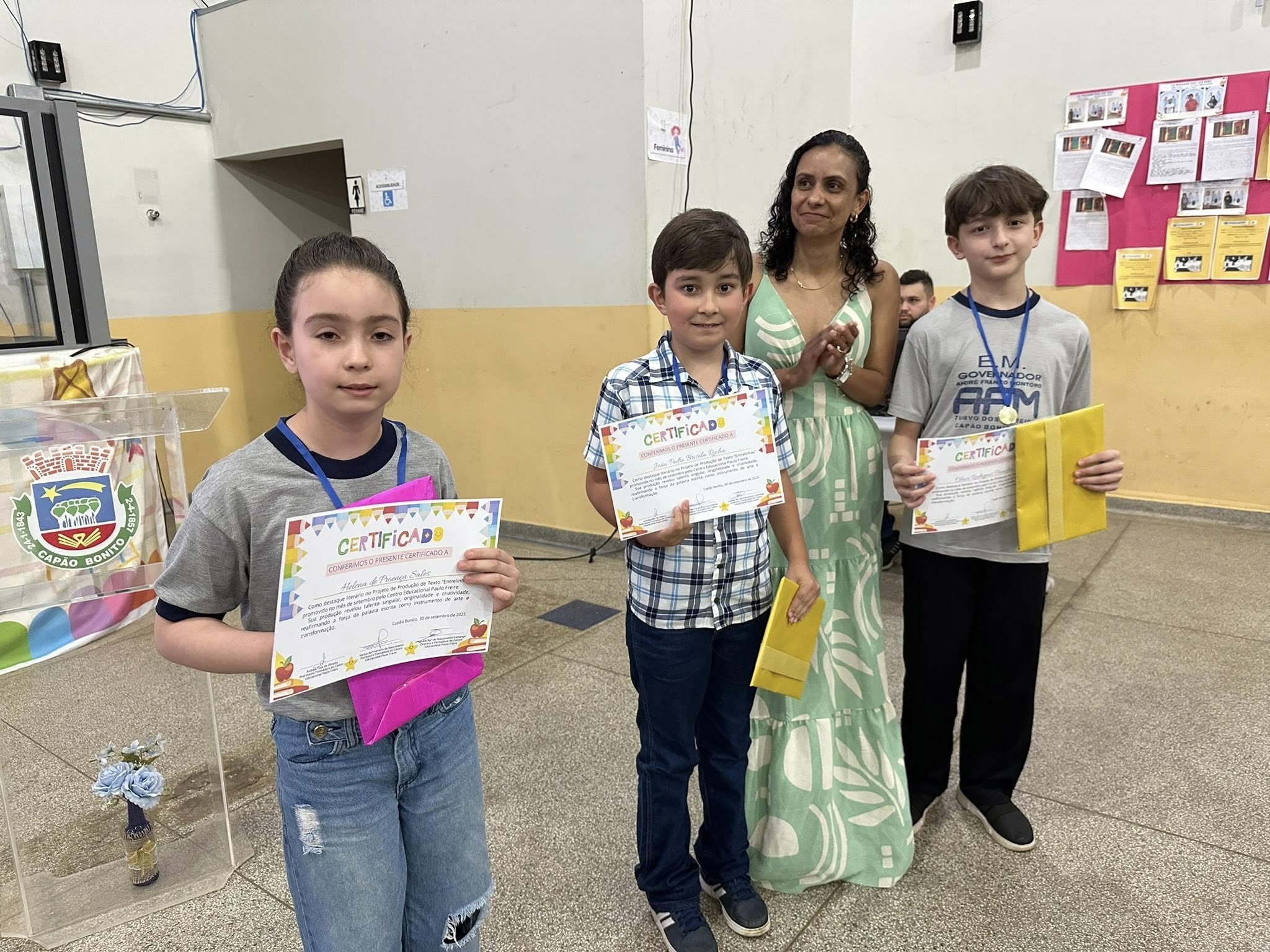 Durante o evento, os alunos premiados receberam certificados e homenagens pelo desempenho nas produções textuais, que refletiram criatividade, sensibilidade e compromisso com a aprendizagem. Para além da competição, o momento reforçou o papel da escola como espaço de expressão e construção do conhecimento.