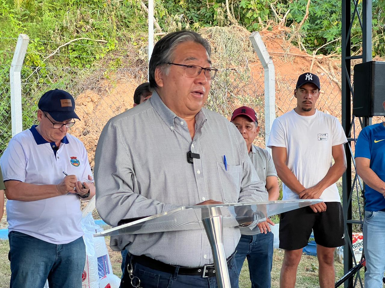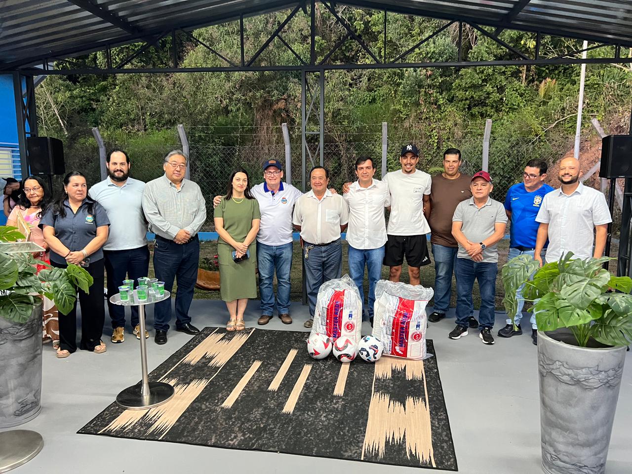 Durante a solenidade, também foram realizadas duas entregas importantes: as chaves de um trato para a Associação de Produtores do Bairro e um kit esportivo, reforçando o compromisso da Administração Municipal com o desenvolvimento social e produtivo da região.