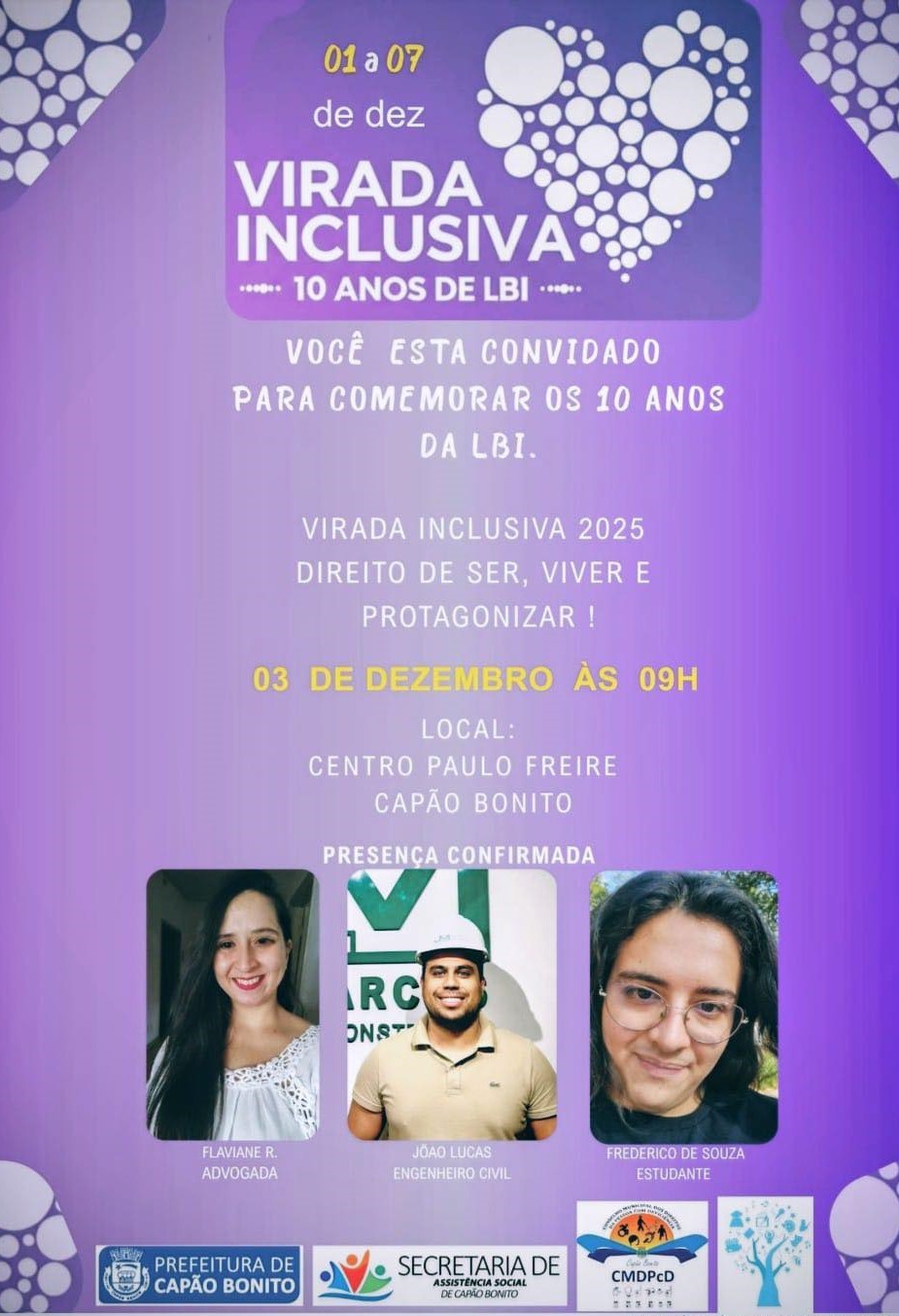 VIRADA INCLUSIVA | Capão Bonito se prepara para uma semana inteira dedicada à inclusão, ao respeito e à garantia de direitos.